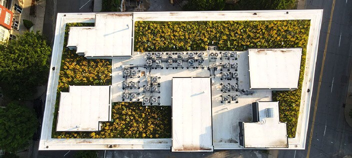 In addition to acting as a tremendously effective stormwater control, the vegetated roof addresses regional challenges of climate change, including biodiversity loss and urban heat island effect.